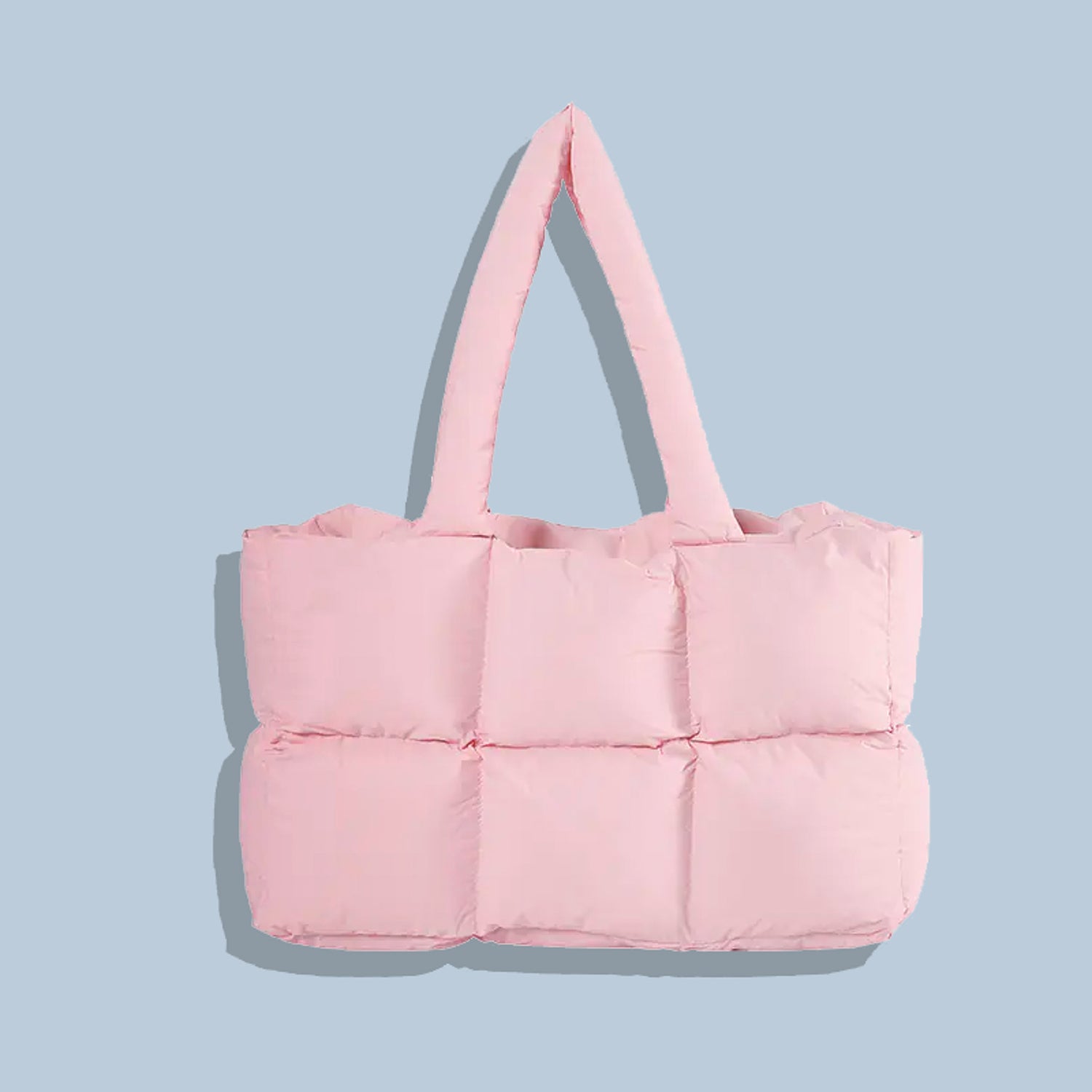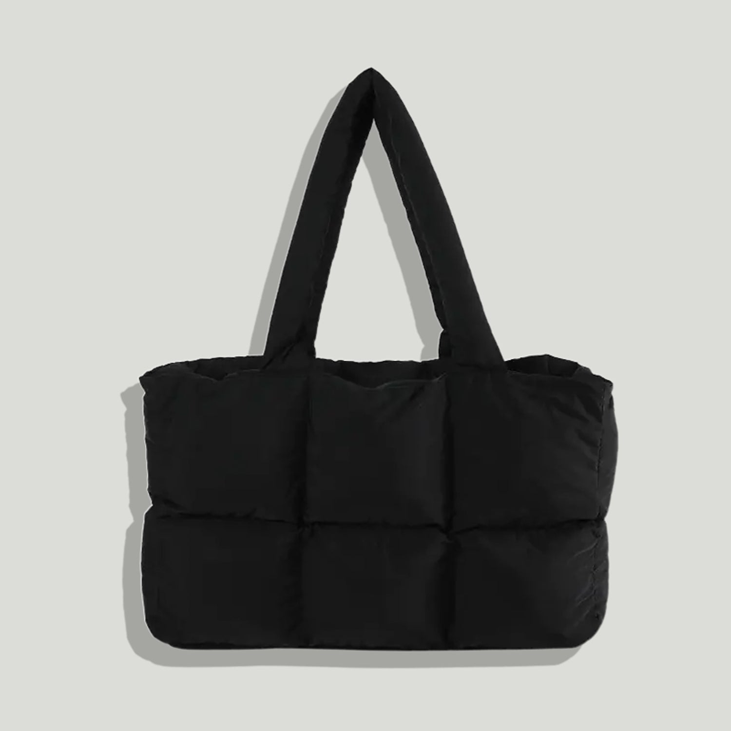 Our quilted puff tote bag is made from soft, high-quality nylon. It’s lightweight, durable, and easy to clean, making it perfect for everyday use.